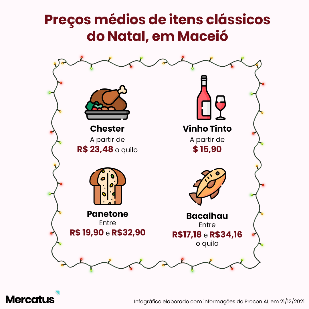 Os dados mostram que, em 2020, a cesta natalina com o valor mais alto ficou na casa dos R$ 270, enquanto que este ano o valor subiu para R$ 349,99. A pesquisa inclui desde produtos de decoração a alimentos típicos como panetone, vinho e peru.