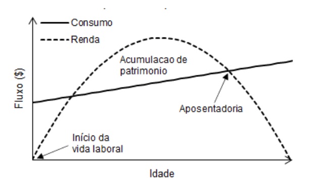 Franco Modigliani, Nobel de Economia em 1985, desenvolve um modelo que divide, por hipótese, a vida financeira dos indivíduos em três principais fases: