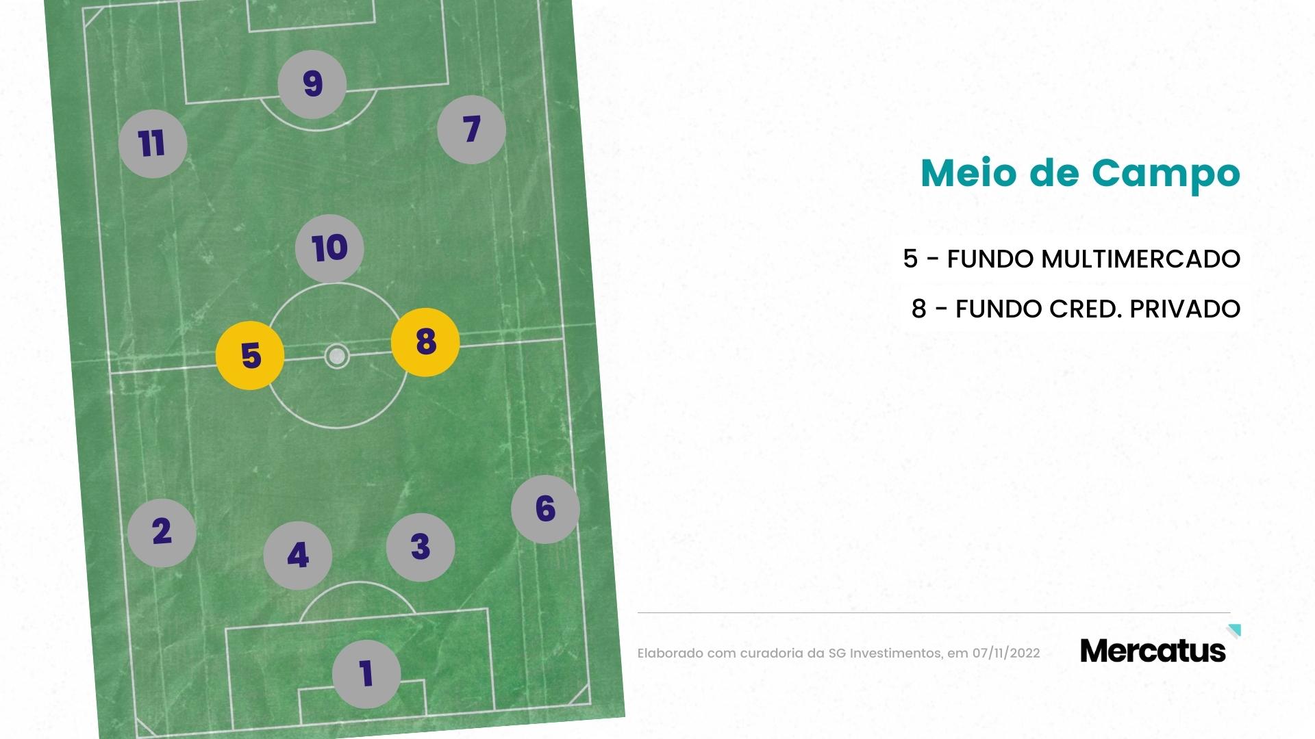Com a Camisa 10, ele comanda o ataque e lidera os jogadores mais agressivos da equipe, responsáveis por marcar os “gols”, trazendo rentabilidade para a seleção: Investimentos Alternativos, Investimentos Imobiliários e Carteira/Fundo de Ações.
