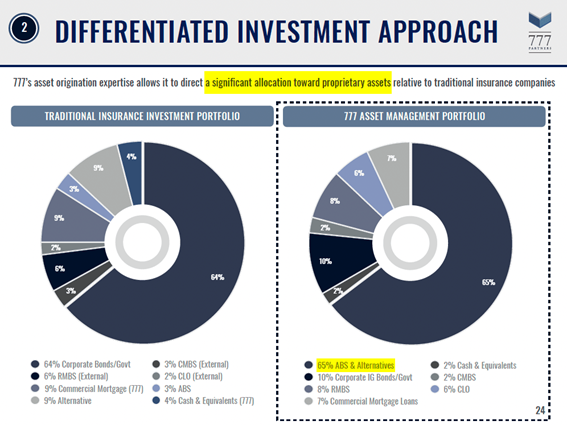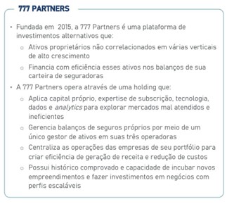 Ou seja, a estrutura de financiamento da 777 Partners para seus investimentos se dá, em parte, através do uso dos recursos sob gestão de sua empresa de seguros, a 777 Re, em investimentos de risco. Essa abordagem está na apresentação institucional da empresa, que detalha essa estratégia para seus investidores.