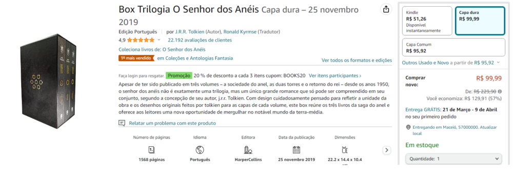 Na Semana do Consumidor, o público que comprar três livros pode ainda utilizar o cupom BOOKS20 para ganhar mais 20% de desconto no mais barato.