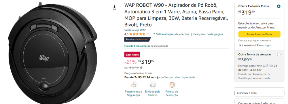 Para quem acha ideal delegar algumas tarefas domésticas à tecnologia, robôs aspiradores de pó podem ser uma boa ideia. Na Amazon, os dispositivos estão disponíveis com preços a partir de R$ 319,00 para clientes Prime.