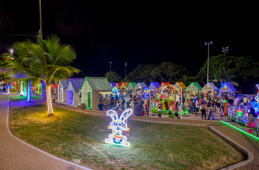 Uma novidade em Maceió para o feriado de Semana Santa é a Vila Iluminada da Páscoa, que fica na Praça Multieventos, no bairro da Pajuçara.