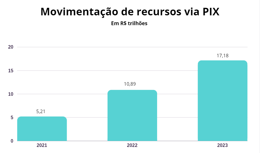 De acordo com o Banco Central, o crescimento das transações feitas via PIX foi de 57,8% na comparação com 2022, quando as movimentações totalizaram R$ 10,89 trilhões. E foram mais do que o triplo do volume de 2021, quando somaram R$ 5,21 trilhões.