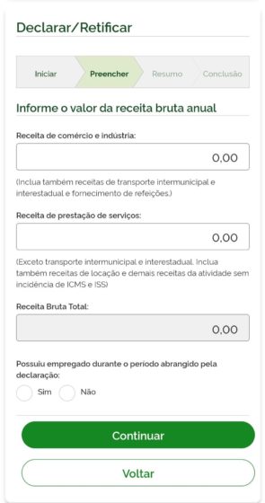 Já a declaração do DASN-SIMEI deve ser feita diretamente na página do Simples Nacional, no site da Receita Federal. Todo o preenchimento pode ser feito online, seja pelo computador ou no navegador web de qualquer smartphone.