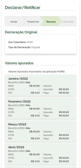 Outra informação importante a ser declarada é o valor pago pelo MEI referente à contribuição previdenciária, que corresponde a 5% do salário mínimo vigente e é a forma de contribuição para a aposentadoria e outros benefícios do INSS.
